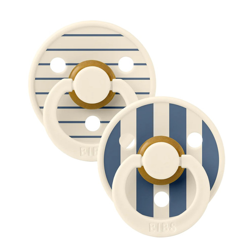 BIBS 02 SUCETTES NATURAL RUBBER IVORY STEEL BLUE MIX SIZE 1