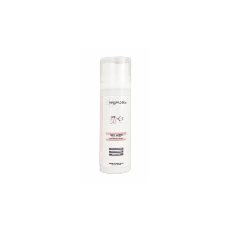 INNOVADERM SKIN WHITE Fond de Teint Minéral Anti-Taches est un soin correcteur teinté qui combine couvrance, protection solaire et traitement des taches pigmentaires.