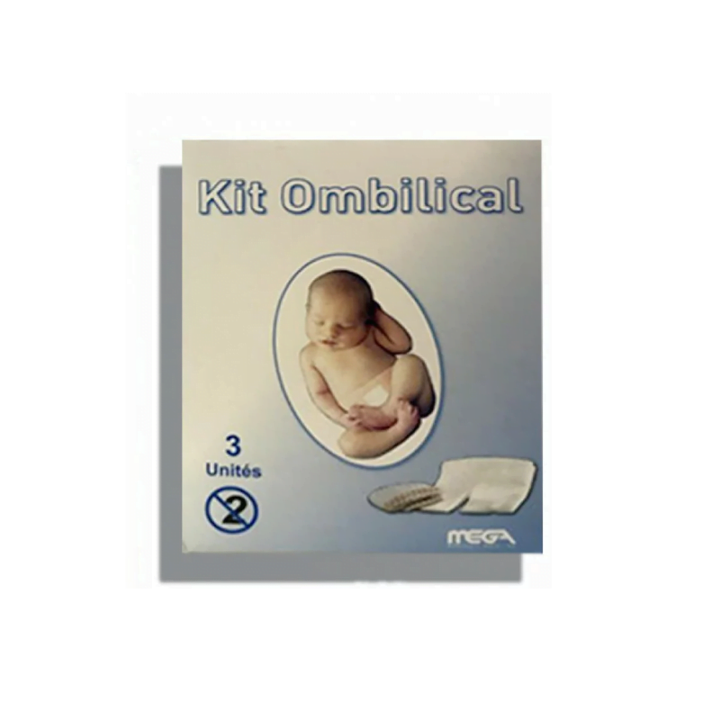 MEGA Kit Ombilical pour les soins du nombril de bébé à la naissance, confortable, hygiénique et pratique et est composé de 3 compresses stériles coton, 3 filets maintien tubulaire extensibles non stériles