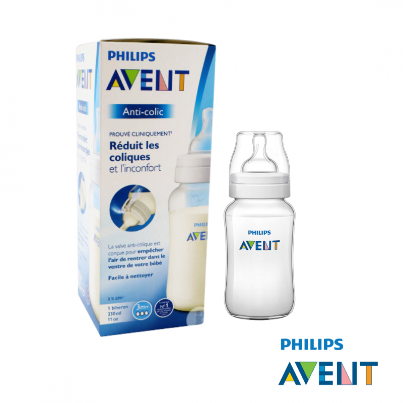 AVENT BIBERON ANTI-COLIC 3M+ 330 ML EN PLASTIQUE