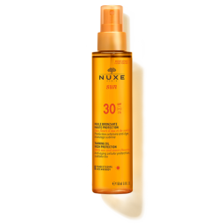 L’Huile Bronzante visage et corps SPF30 de Nuxe permet de...