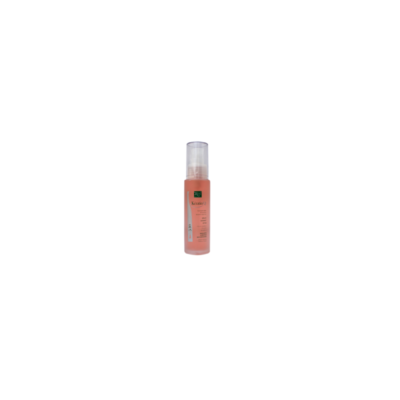 KératinQ10 serum gainant SPF30 permet de bien refermer les écailles et gainer la fibre en apportant aux cheveux soin et protection nécessaires pour faire face aux agressions (Soleil,Vent,Chlore,Sel) PRINCIPES ACTIFS : CERAMIDE A2 gaine , assure un rôle de ciment et permet de rétablir ou de renforcer de façon importante la cohésion cellulaire au niveau du cheveu Kératine végétale renforce la structure cellulaire du cheveu l'innovation CoenzymeQ10 stimule la racine des cheveux pour activer la production des deux kératines qui diminue avec le temps.