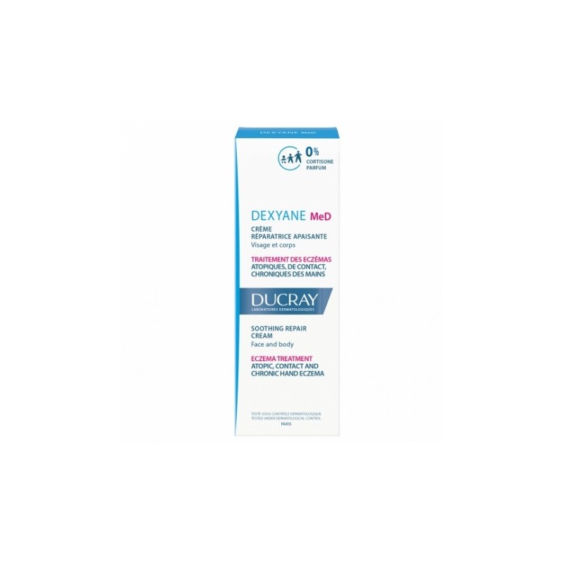 Dexyane MeD crème réparatrice apaisante traite, répare et limite la réapparition des lésions d’eczémas. Sa texture « effet pansement ultra-hydratant » assure la protection de la peau.
