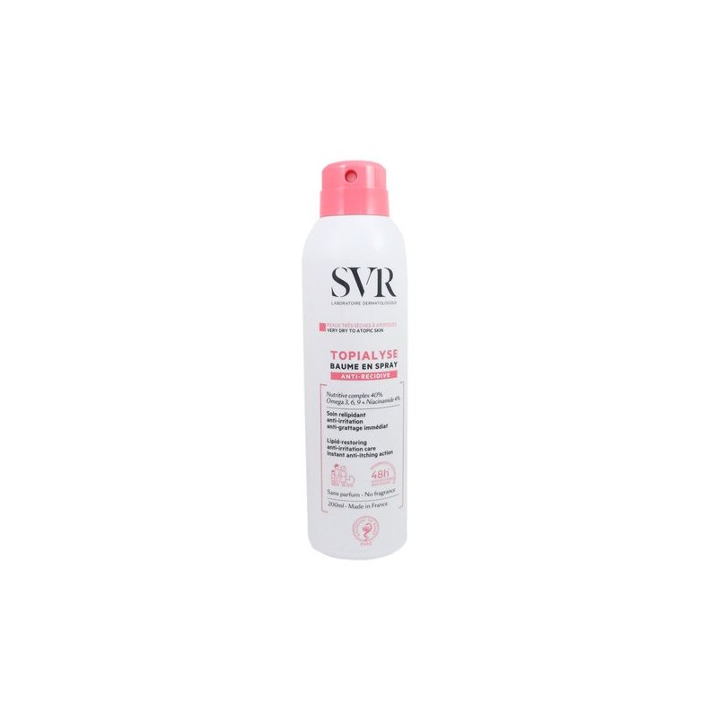 TOPIALYSE Baume en spray soulage les peaux à tendance atopiques. Peaux sensibles très sèches à tendance atopique. Dès la naissance, pour toute la famille. TOPIALYSE Baume en spray est un baume anti-récidive qui soulage immédiatement et apaise durablement les irritations et sensations de grattage. L’application d’un émollient au quotidien est souvent laborieuse. Avec TOPIALYSE Baume En Spray cela devient un jeu d'enfants