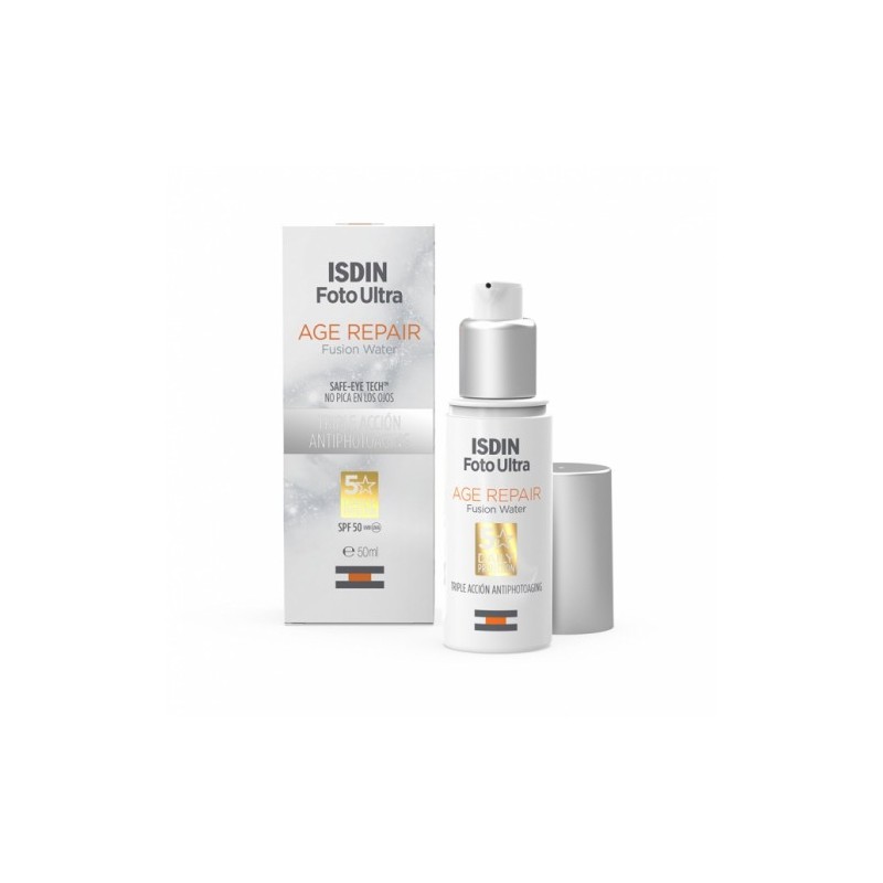Texture ultra légère à absorption rapide, sans résidus. Convient à tous les types de peau, y compris les peaux grasses et/ou sensibles. Isdin FotoUltra Age Repair Fusion Water Texture SPF 50 50 ml est un fluide visage à usage quotidien contenant des actifs qui aident à corriger le photo-vieillissement. La formule SPF 50 de ce fluide offre une haute protection aidant à prévenir les dégâts causés par le soleil. Le DNA Repairsomes favorise la réparation des dégâts causés par le soleil au niveau cellulaire